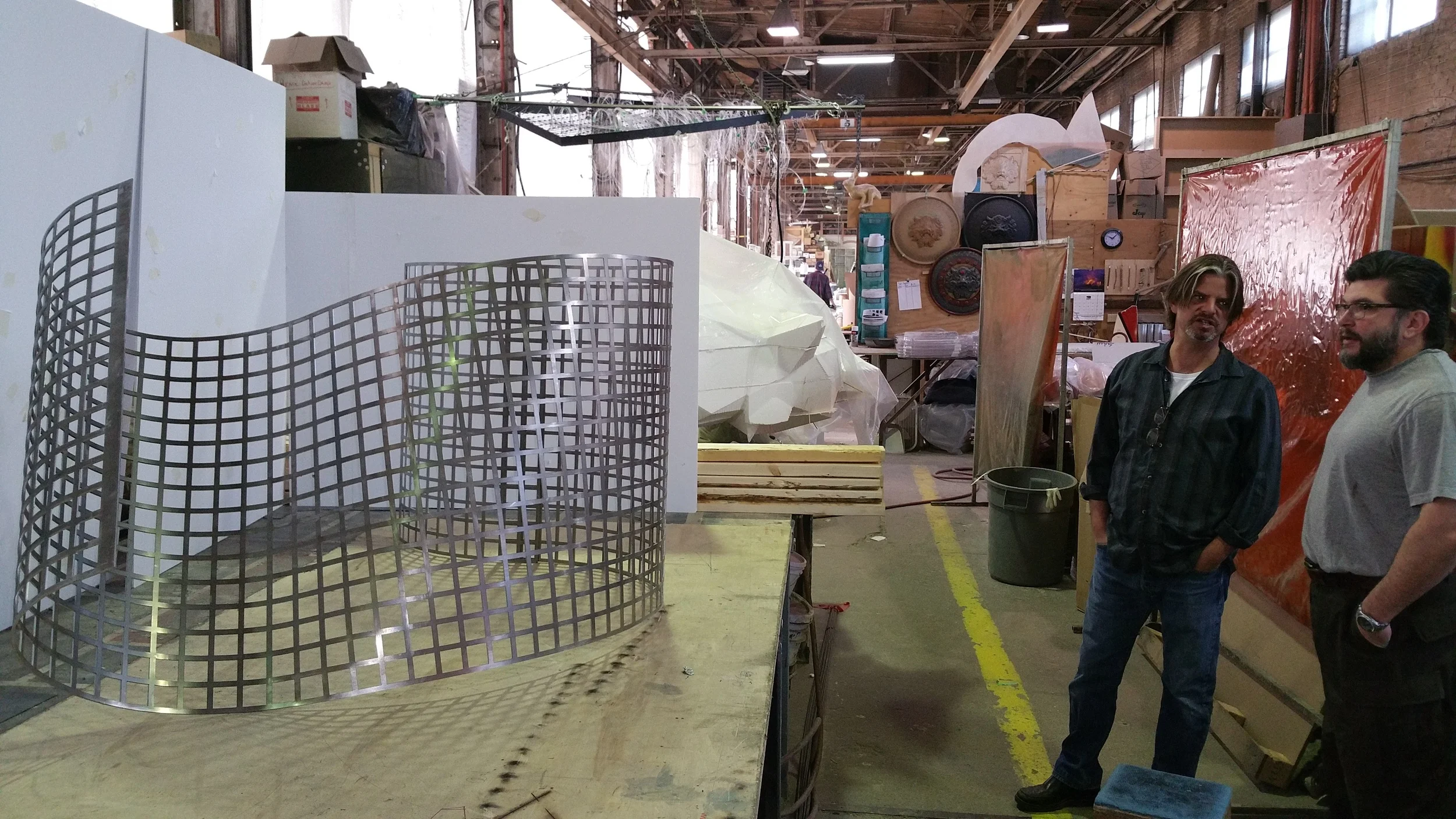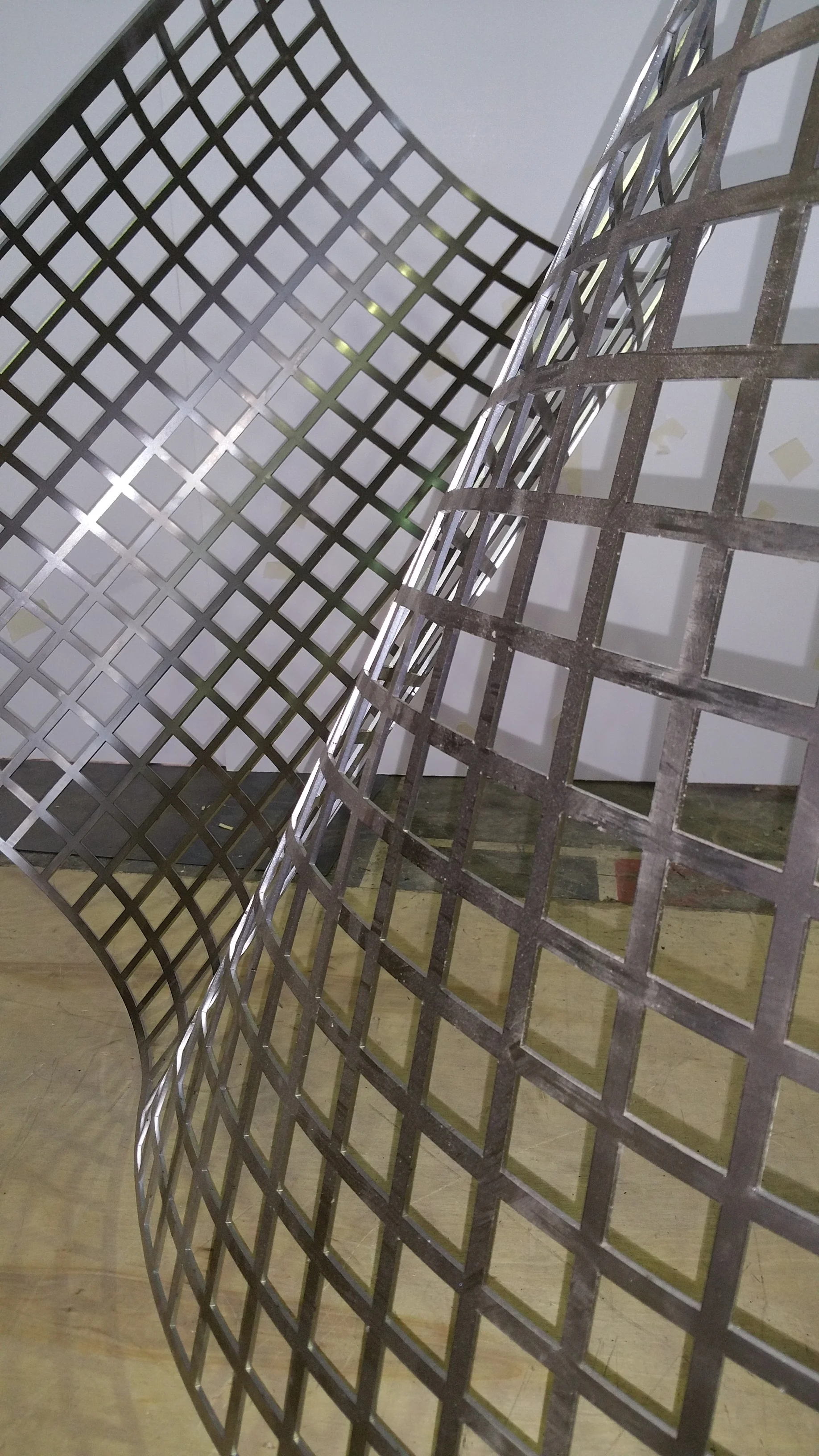 The sculpture is being built by F&D Scene Changes here in Calgary. 3 mock-ups were created so the actual material could be chosen. Here is a small section of the sculpture.... the squares are laser cut from the metal sheet and then formed by hand.